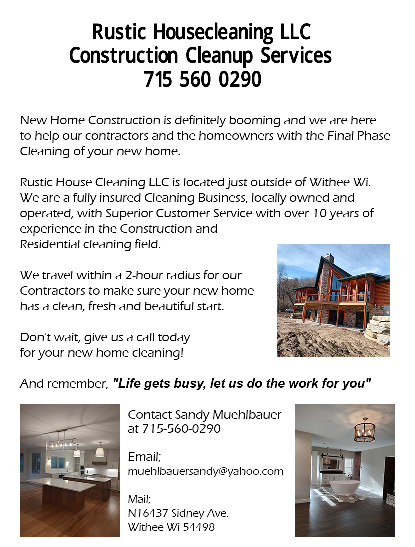 Rustic HouseCleaning LLC is a licensed and insured trustworthy Cleaning Business located outside of Withee, Wisconsin.